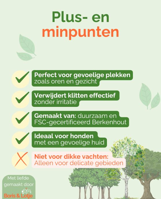 - Niet geschikt voor dikke of lange vachten: Deze kam is specifiek voor delicate gebieden en niet voor grote vachten.