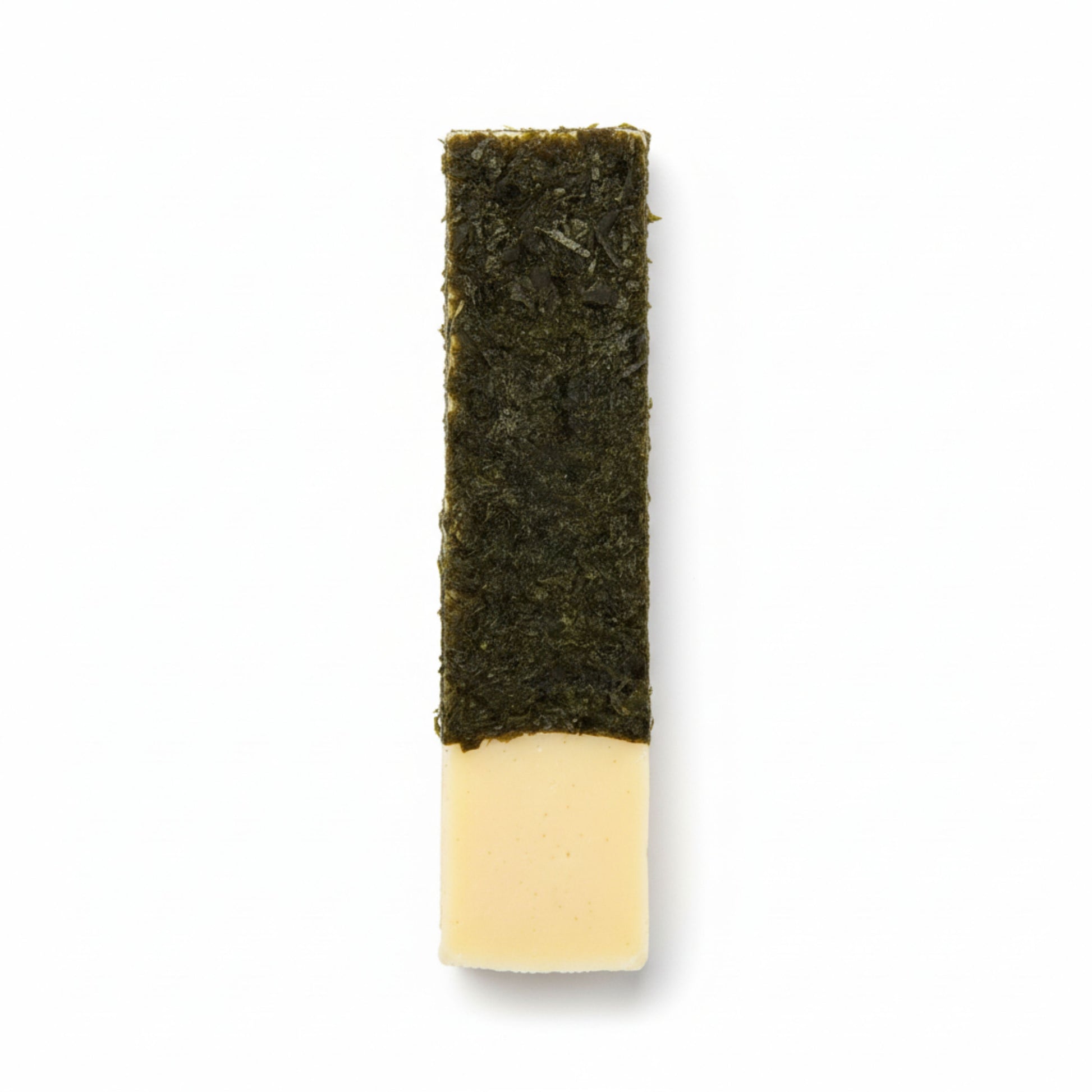 De kaasstaaf met Zeewier is geïnspireerd op de Aziatische keuken. Door de kaasstaaf te omwikkelen met heerlijke nori vellen, kan geen hond hier nee tegen zeggen! Uitsluitend gemaakt met foodgrade zeewier.